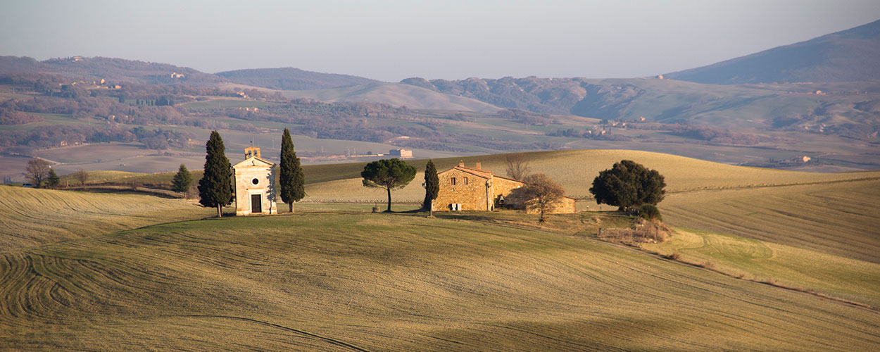 The Val d'Orcia is a valley that is located in Tuscany, in the province of Siena and takes its name from the river running through it. Since 2004 UNESCO has declared this area a World Heritage Site: this award has gone to add to the protected natural area of local interest, already received in 1999. Its landscapes, characterized by long rows of cypress trees, rolling hills, beautiful farmhouses and delightful medieval villages, have inspired writers and artists of all ages. All municipalities in the Val d'Orcia, besides the landscape, are also interesting from the historical-artistic aspect presenting architectonic relevances: medieval (XI-XIV century) and Renaissance (XV-XVI century). The most important are: San Quirico d'Orcia (la Collegiata, Palazzo Chigi and Horti Leonini), Pienza (the Cathedral, the Ammannati palace , Vescovile palace and Piccolomini palace) in Montalcino (the Rocca, the Town Hall, the Church St. Augustine). The Val d'Orcia, however, has not lost its agricultural nature. The wine, olive oil and cheese are just the major productions that bring to the fore these territories throughout Italy and the world, such as Brunello di Montalcino and Pienza Pecorino.